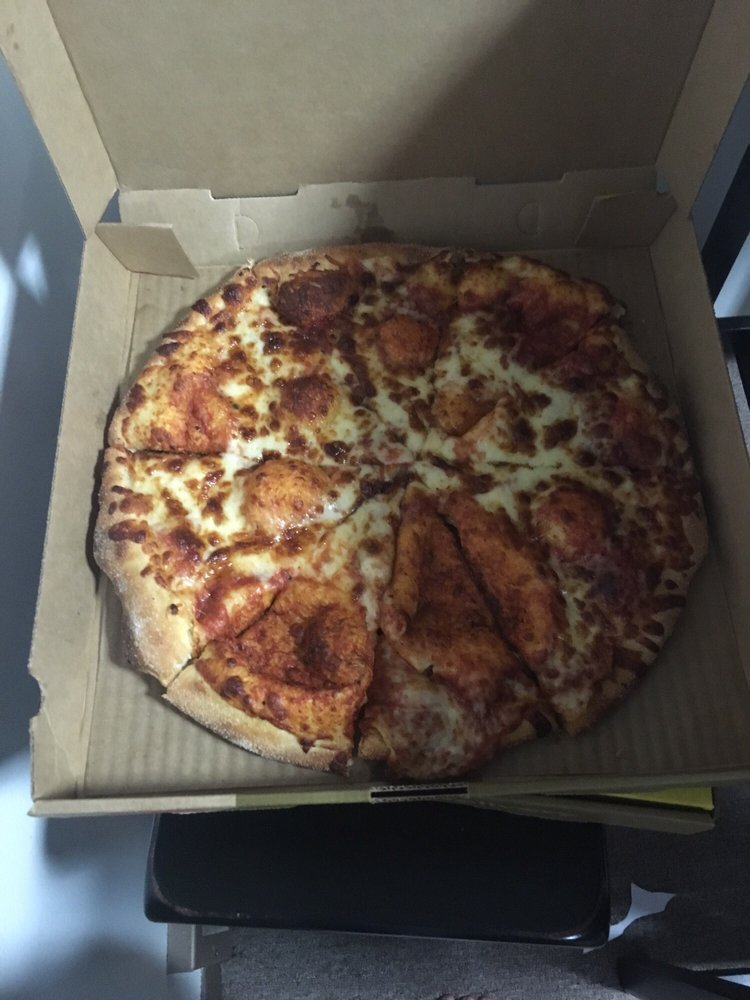 Cheese, grilled chicken, bacon, onions and BBQ sauce.